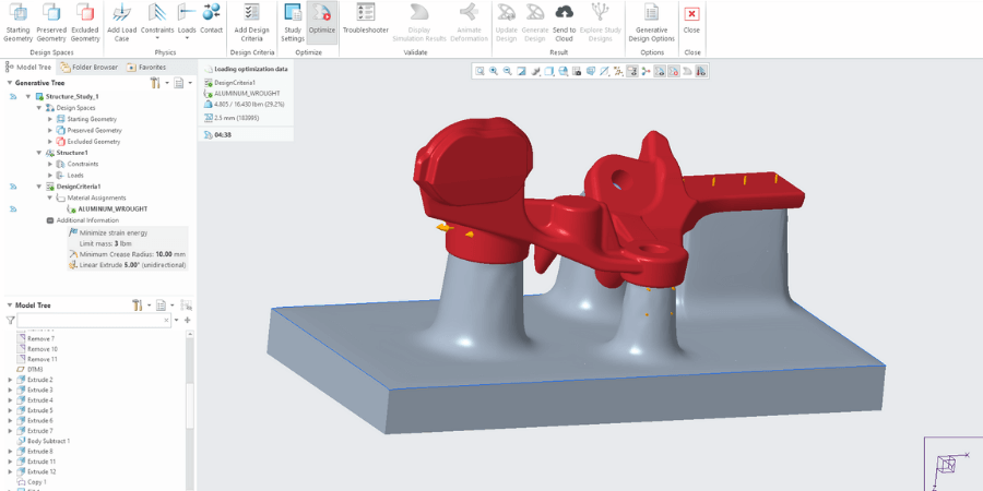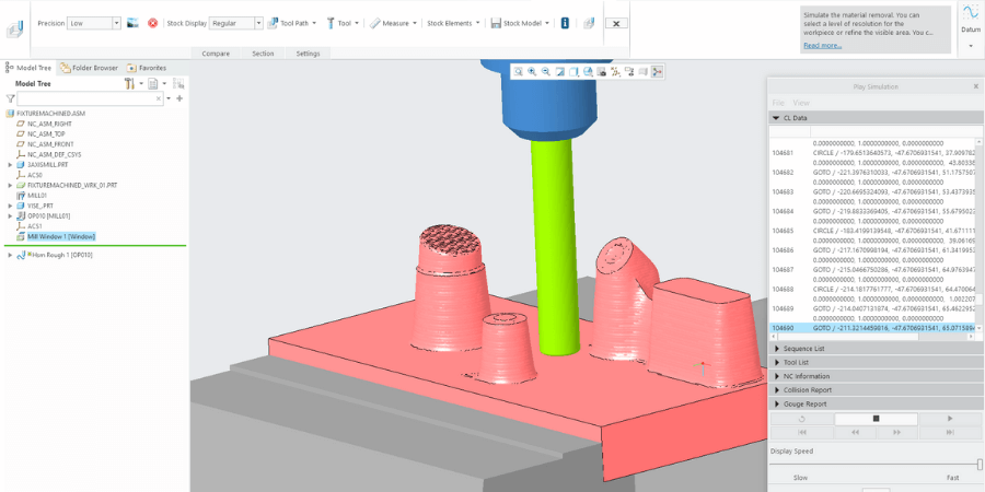 Trong tính năng gia công mở rộng của Creo như High Speed Milling Plus, bạn có thể sử dụng chi tiết được thiết kế tự sinh làm mô hình tham chiếu để thực hiện các hoạt động phay chính xác của bạn. Khi các hoạt động phay đã thiết lập, bạn có thể kiểm tra lại việc loại bỏ vật liệu như một bước xác nhận trong quy trình.