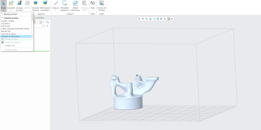 Trong ví dụ này, bạn có thể dử dụng máy in để bàn, vì vậy hãy sử dụng tùy chọn in 3D Windowns 10 trên Tray Assembly